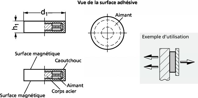 Aimant plat magnétique des deux côtés, avec protection caoutchouc