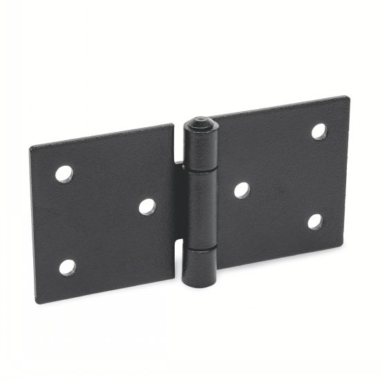 Charnière asymétrique ou large, noeud à plat, acier ou inox MATIERE - Acier zingué, passivé bleu ou inox (AFNOR Z 6 CN 18-09, Werk 1.4301, AISI 304), brut ou pelliculé noir. - Axe en inox (AFNOR Z 6 CN 18-09, Werk 1.4301, AISI 304), riveté.