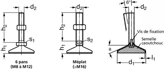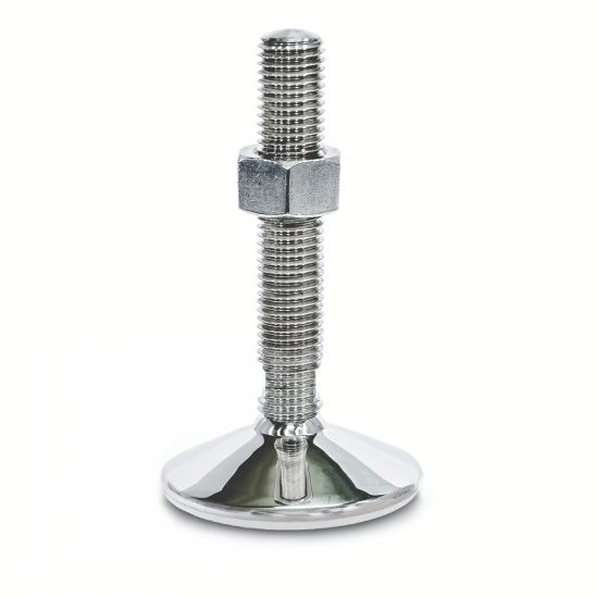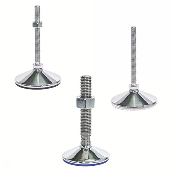 Pied inox 316 L, à tige filetée, avec semelle vulcanisée, conforme FDA