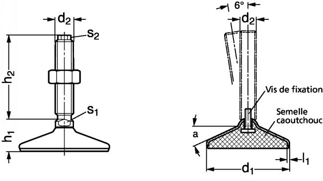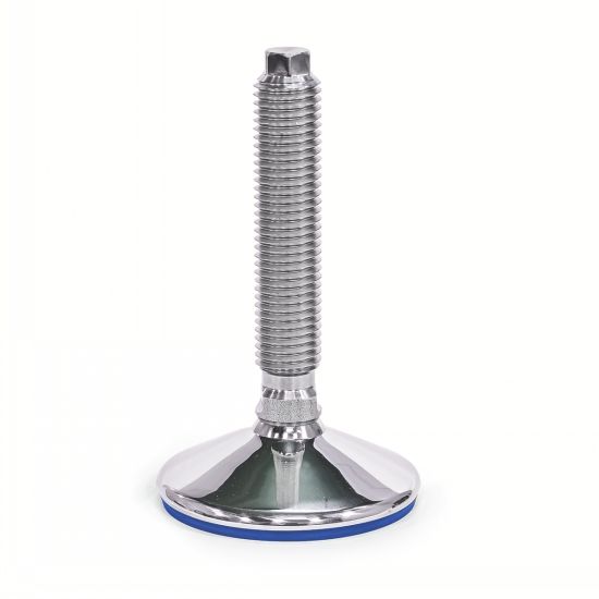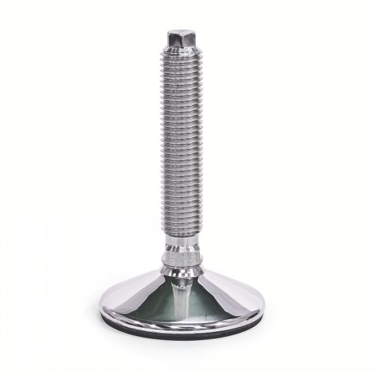 Pied inox, à tige filetée avec six pans et semelle vulcanisée, conforme FDA
