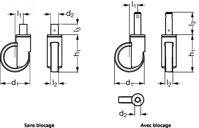 - Diamètre de roue (d1) : de 125 à 200 mm.