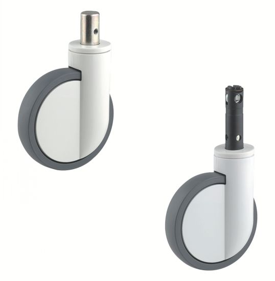 - Blocage centralisé permettant de bloquer simultanément plusieurs roulettes au moyen d'une seule pédale de frein.