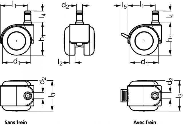 - Diamètre de roue (d1) : 50 mm.
