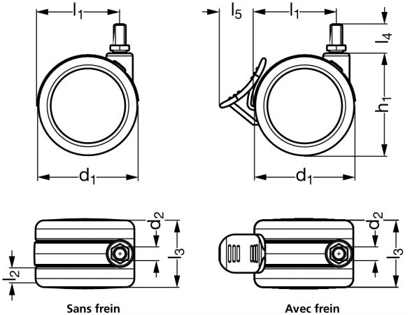 - Diamètre de roue (d1) : 75 mm.