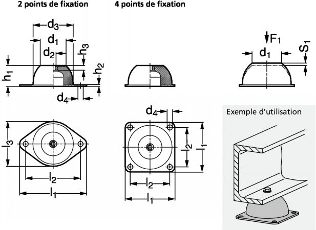 - Permet d'absorber les vibrations, de réduire les bruits et d'amortir les chocs.