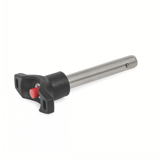 Version La broche de centrage à ergots 32-157 est dotée d'une tête en forme de poignée en L ou en T pour une manipulation aisée. Le maintien s'effectue grâce à des ergots plats. D'autres broches de centrage de notre gamme existent avec d'autres systèmes de maintien tels que des billes et d'autres formes de têtes. Cette poignée en L ou en T permet également de fixer une chaînette.