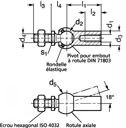 Ces embouts composés de rotules axiales permettent de transmettre les forces de compression axiale et de compensser les décalages angulaires.