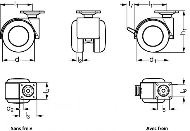 - Cette roulette pour meuble pivotante est disponible en version avec et sans frein.