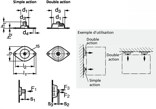 - La version double action s'utilise en tension et en compression, notamment en suspension.