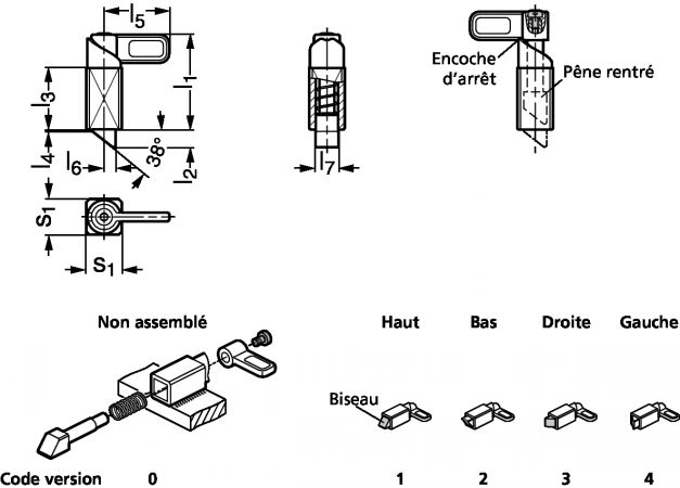 - Les versions livrées non assemblées (code version : 0) permettent de souder le corps avant de faire l'assemblage pour éviter tout changement indésirable de la microstructure des matériaux dû à l'échauffement du ressort et du pêne.