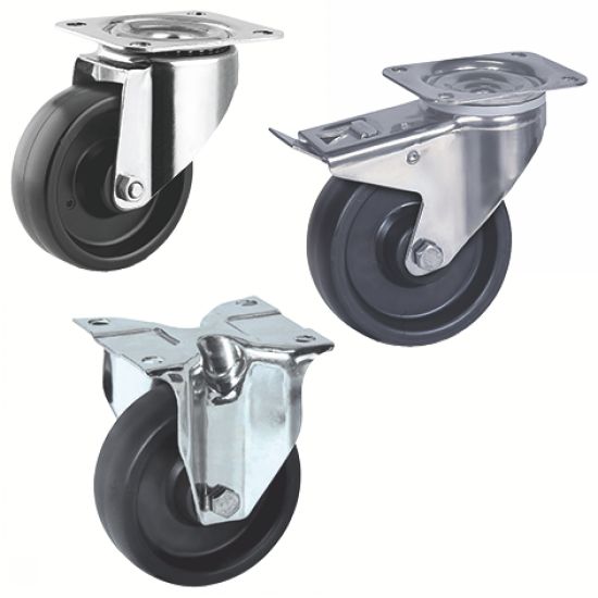 - Cette roulette charge moyenne est disponible en version pivotante sans frein, pivotante avec frein et en version fixe sans frein.