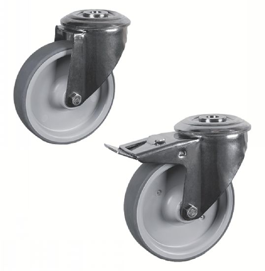 - Cette roulette charge moyenne est disponible en version pivotante avec et sans frein.