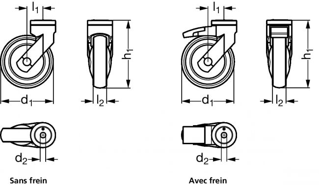 - Diamètre de roue (d1) : 100 ou 125 mm.